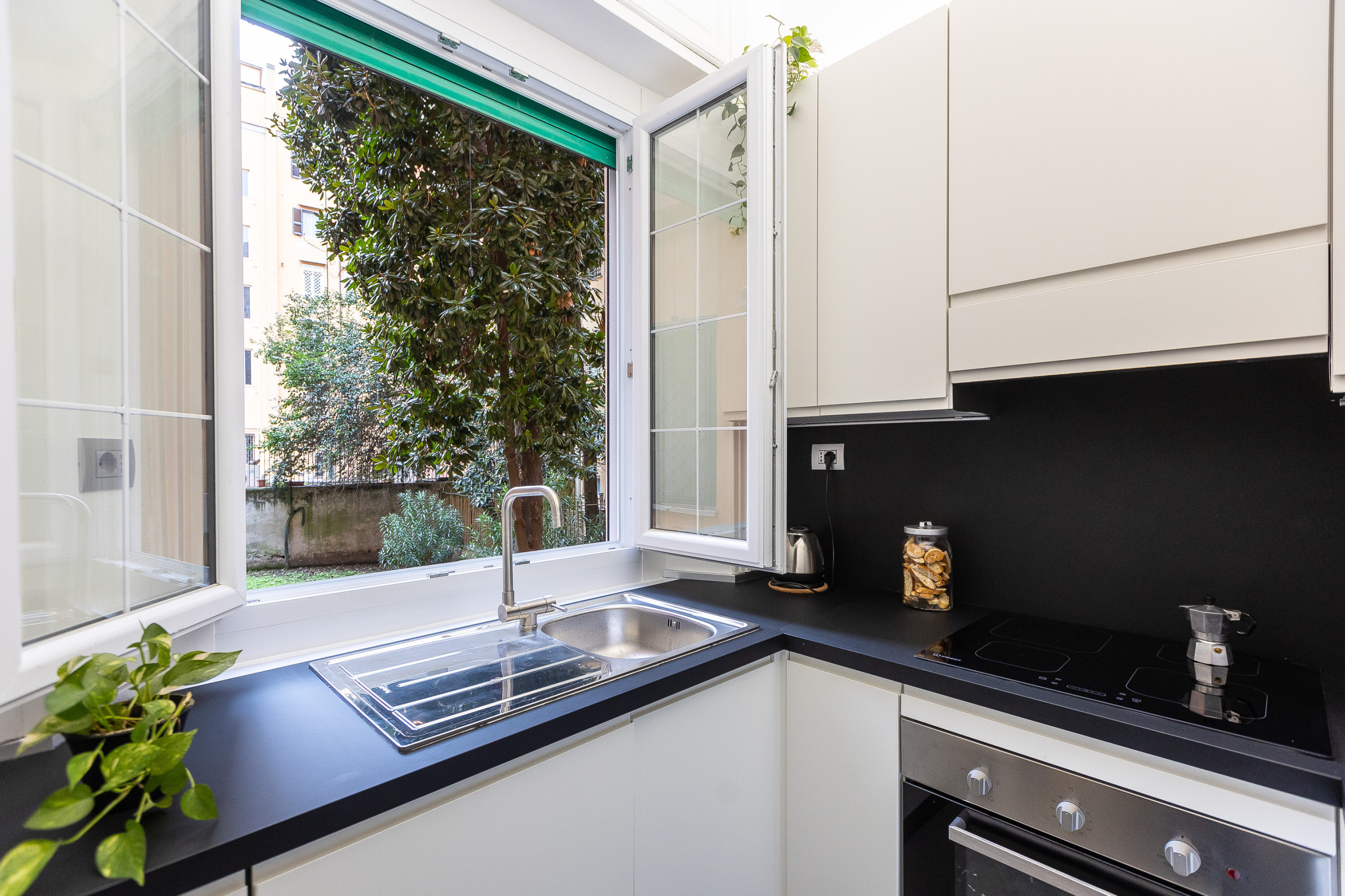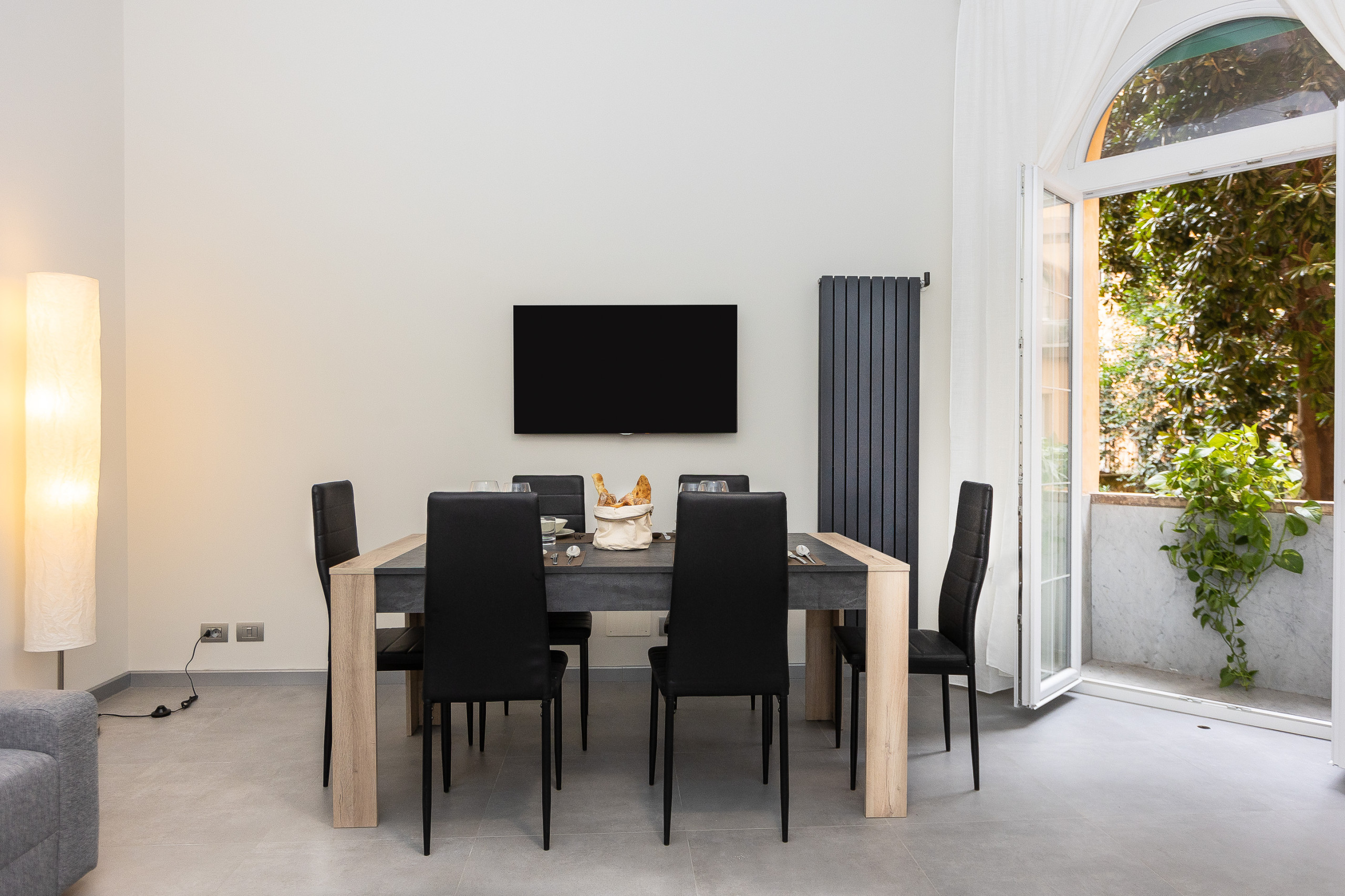 El apartamento en Roma tiene 2 dormitorios y capacidad para 7 personas. El apartamento tiene 100 m². El alojamiento está equipado con los siguientes elementos: ascensor, lavadora, secadora, plancha, internet (Wi-Fi), bomba de calor, aire acondicionado, 1 TV, televisión por satélite.En la cocina de inducción de planta abierta, se proporcionan refrigerador, microondas, horno, congelador, lavavajillas, platos/cubiertos, utensilios de cocina, cafetera y hervidor.