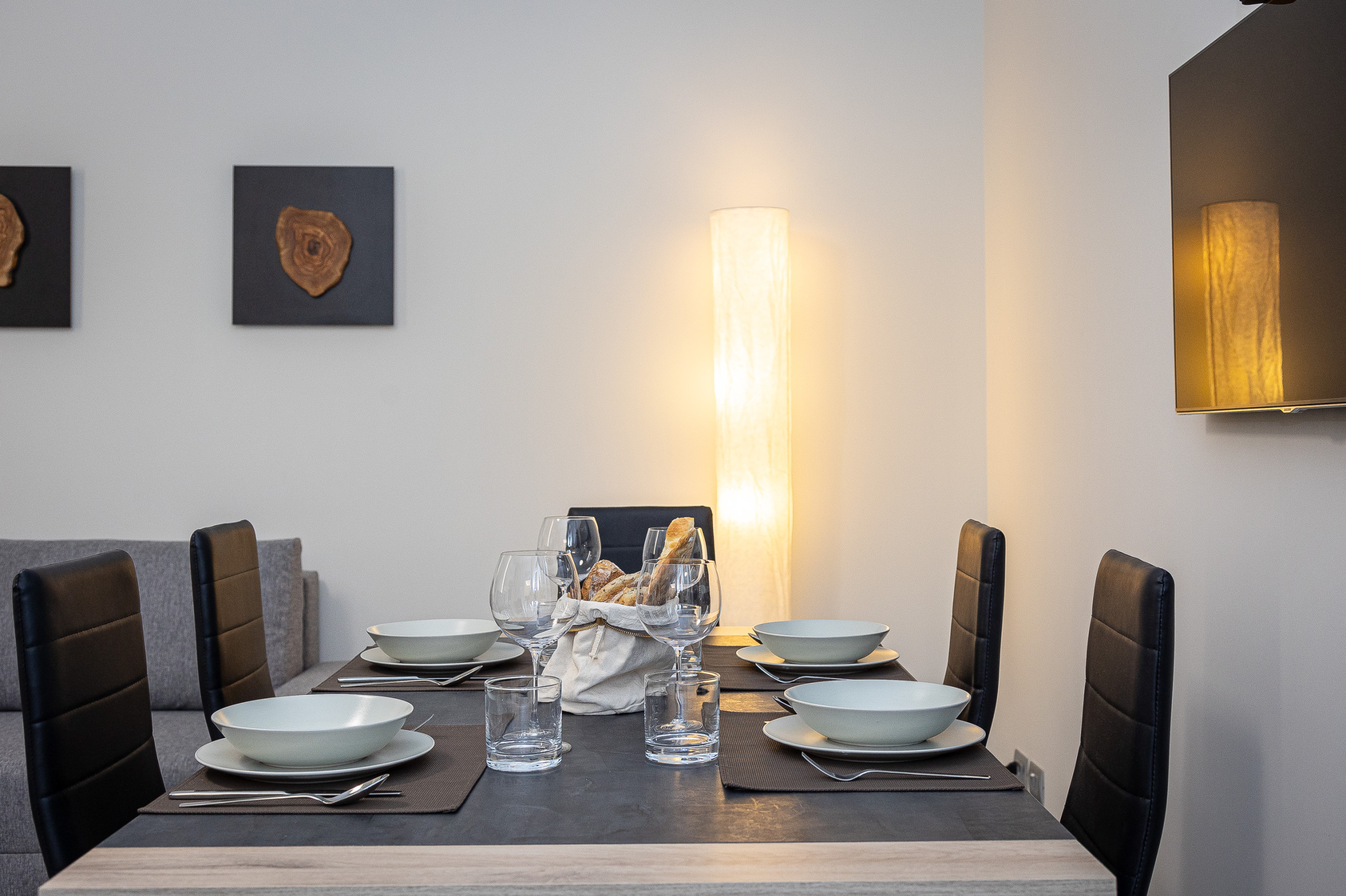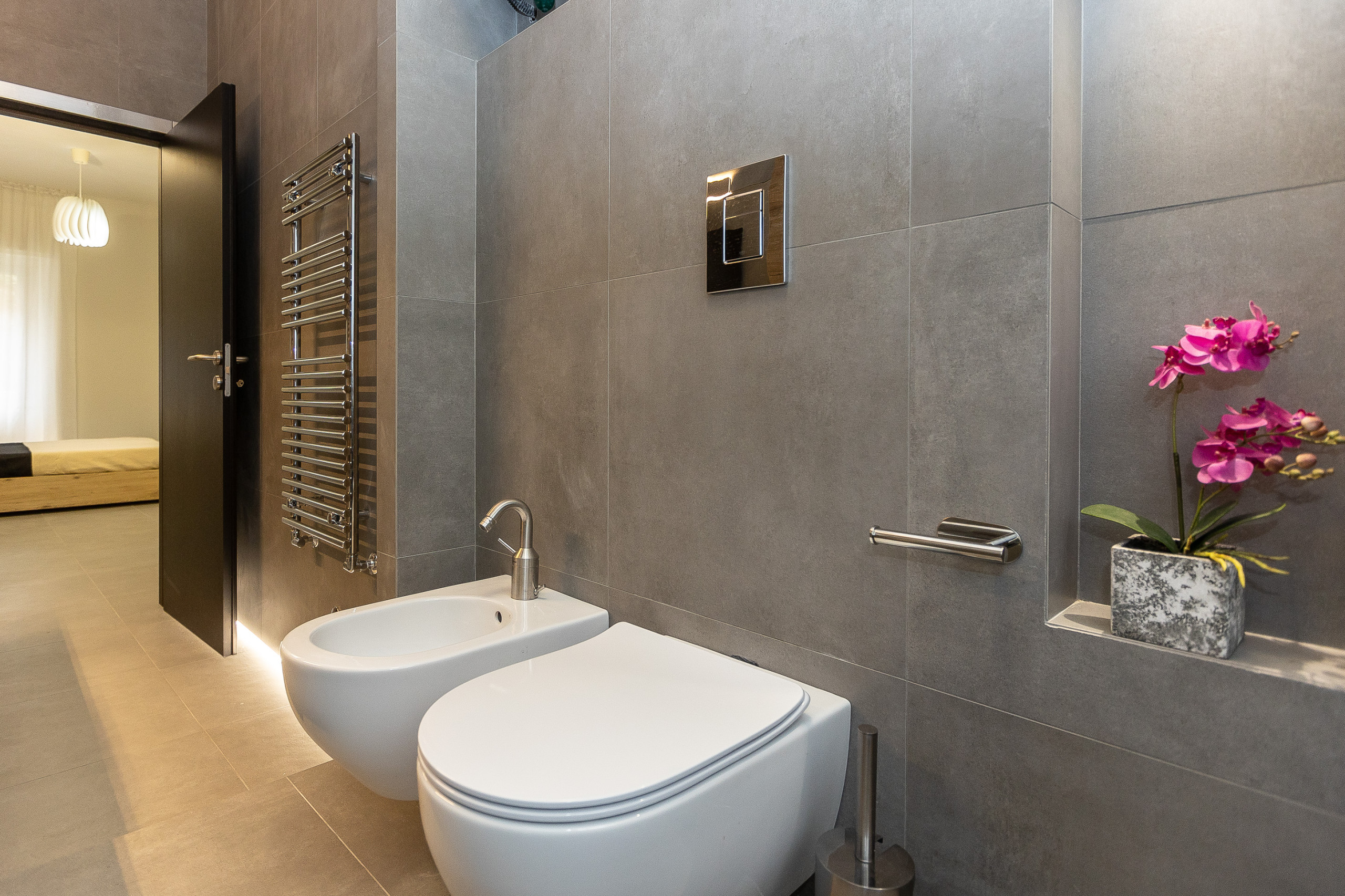 Amplia entrada, zona de estar con un cómodo sofá y mesa de comedor para hasta 8 personas. Dormitorio principal con cama doble grande, televisor inteligente de pantalla plana, armario, cómoda mesa para dos, enriquecida por dos pinturas únicas. Segunda habitación con dos camas queen-size, armario amplio y televisor inteligente de pantalla plana. Tercera habitación con cama doble grande, televisor inteligente de pantalla plana, armario amplio y baño en suite con ducha de obra y lavadora. Segundo baño grande con bañera y ducha de doble cabezal. Ambos baños están equipados con todos los accesorios necesarios. Cocina totalmente equipada con placa de inducción, lavavajillas, cafetera Nespresso, tostadora y hervidor, perfecta para preparar deliciosas comidas caseras. CIN: IT058091C2464YY853
